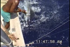 Kona Fishing ReportAn angler tags and releases her first blue marlin on a half day fishing charter in Kona Hawaii on board the Humdinger. Captain Jeff Fay and deck hand Henry “Butch” Chee Jr. work together as a team to bring the big blue marlin to the leader and successfully tag and release the anglers first blue marlin.